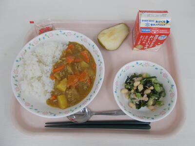 11月12日:カレーライス、ツナと大豆のサラダ、ラ・フランス、牛乳