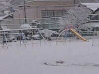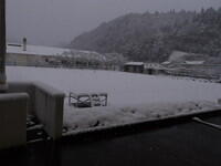 校庭一面が雪景色。多いところで12cm程度の積雪でした。