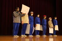 次に、「体育委員会」が冬休みの運動・生活について劇風に発表し、「みんなで食べよう委員会」が先日のアンケート結果をもとにクイズを作って発表しました。