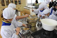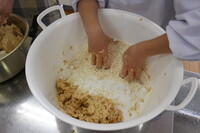3年生は、「発酵とは何か」から教えていただきました。自分たちの生活の中には、想像以上にたくさんの発酵食品があることを知り、驚いていました。2月2日(月)から3日間かけて様々な作業工程に挑戦し、この日いよいよ「仕込み」をしました。スムーズに作業する様子に講師の方々も驚かれていました。楽しみながら、発酵について学ぶことができました。1年後が今から楽しみな3年生でした。