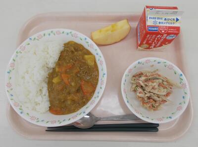 1月14日の献立:カレーライス、根菜サラダ、りんご、牛乳
